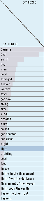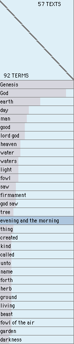 I. Results of Auto Thought Shuffling, on the first 2 chapters of Genesis (King James), seeking terms that have maximum appearances.